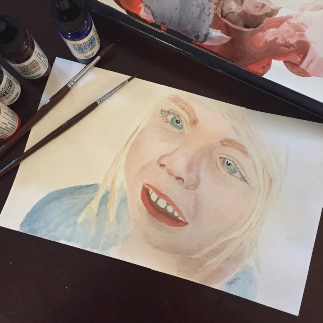 Here’s where my thought process gets a little weird, though. I look at my finished painting and think to myself, “That is producing some really great skin tones. And Sarah is doing a great job explaining shading and highlights…. I bet I could do a person!” And so I did.