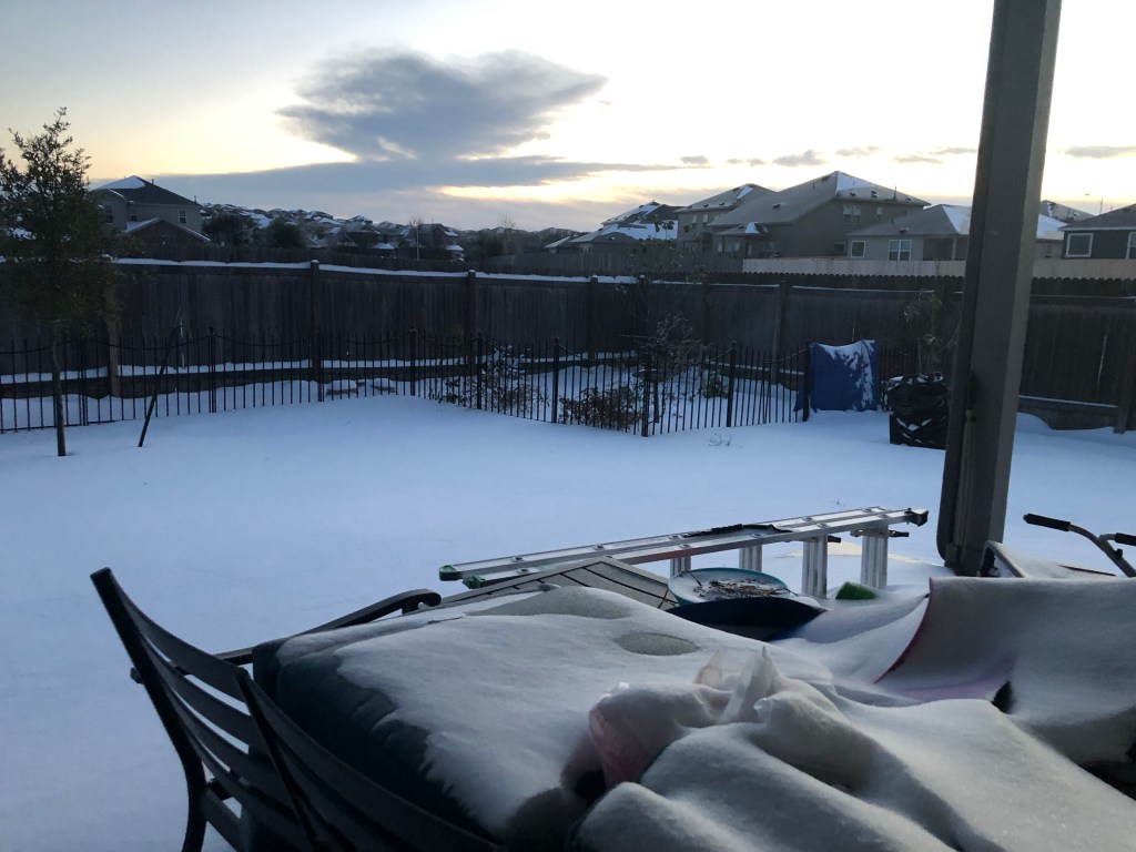 So if you’re keeping track, we went 85 hours without electricity in sub freezing temperatures. More than half of that was without running water. We are still without water. Most plumbers are unreachable, and if you do get one on the line, they’re unavailable until March at this point. Fortunately, we think it’s a small break, and we have neighbors that have talked us through how to fix it. At least until the plumbers are available again.