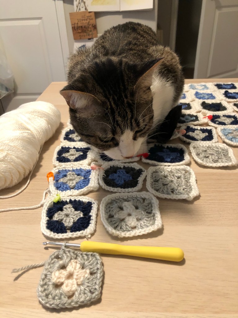 As I started joining the pieces I had done, I finally decided I wasn’t truly happy with the gold I had picked out for the 80s temperature range. So before I joined up that one square, I went back out to another yarn store to see if they had a different color I liked better.