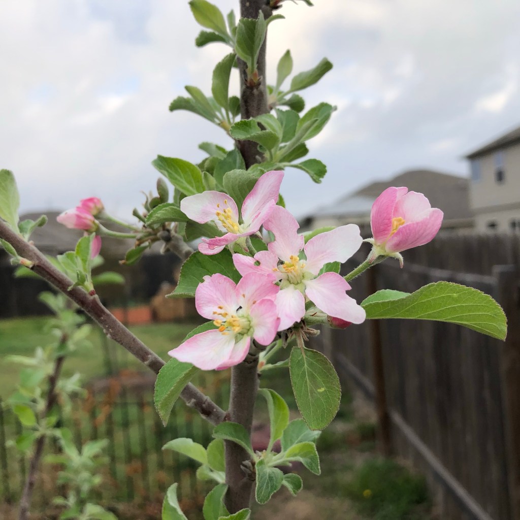 The garden appreciates the warmth though. Both of my apple trees are blooming.