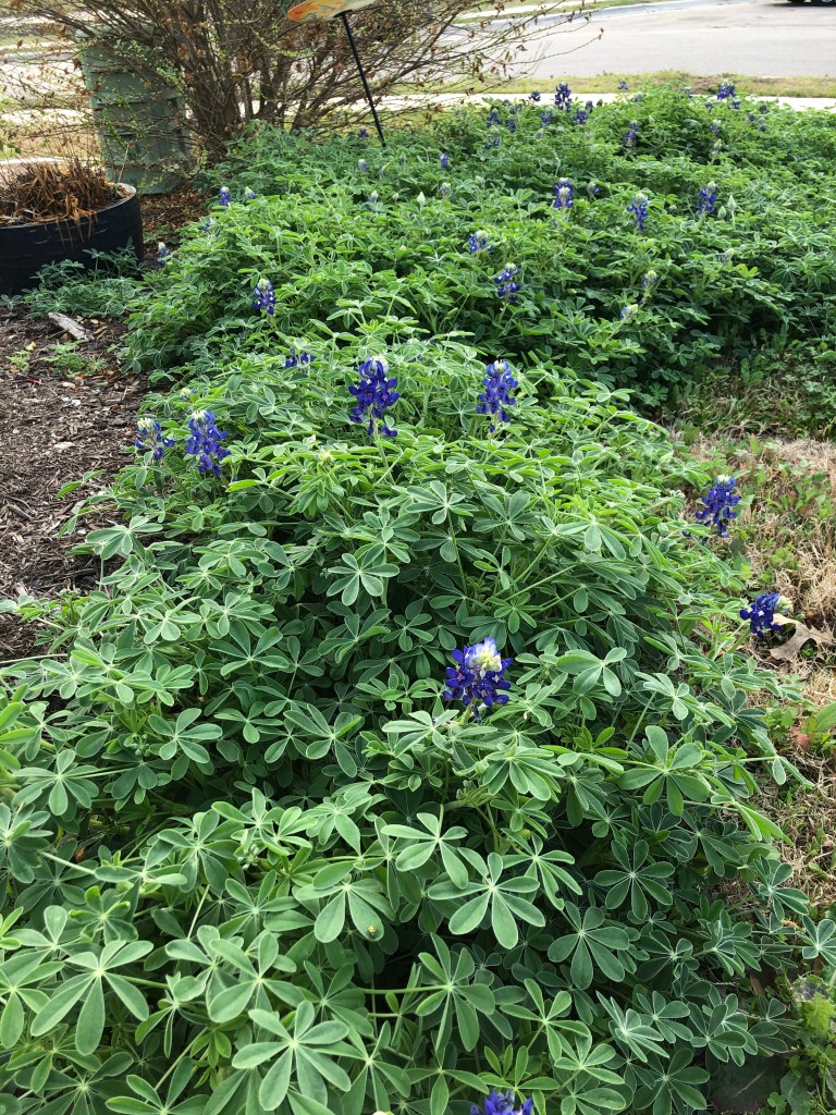 Bluebonnets are covering my southeast corner. We actually got some rain last night, so there are even more today than there are in this photo.