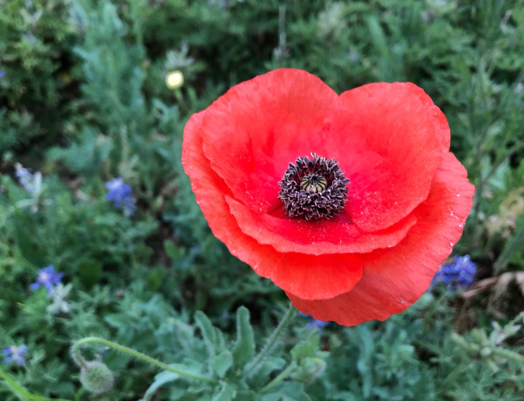The bluebonnets are just about spent now and are forming seed pods, but the poppies are starting to bloom. They’re popping up in the most random places in the yard. The lilies have also stopped blooming.