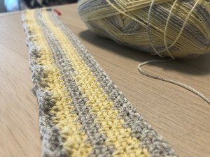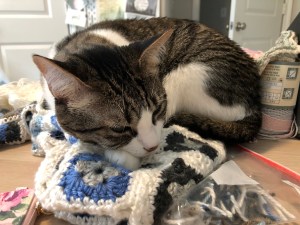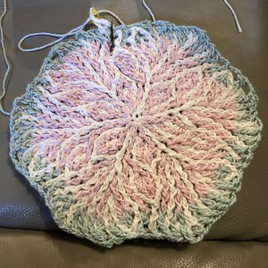 I had a dilemma. Do I frog the whole thing back to the 2trtog and do the sides properly? Do I frog it and add and extra stitch to straighten the seam out? (Would that work?) Do I just let it go? You probably wouldn’t even notice it once it’s on. But my kid has already seen and turned her nose up at it. So it got put on a shelf, and I started two or three more projects.