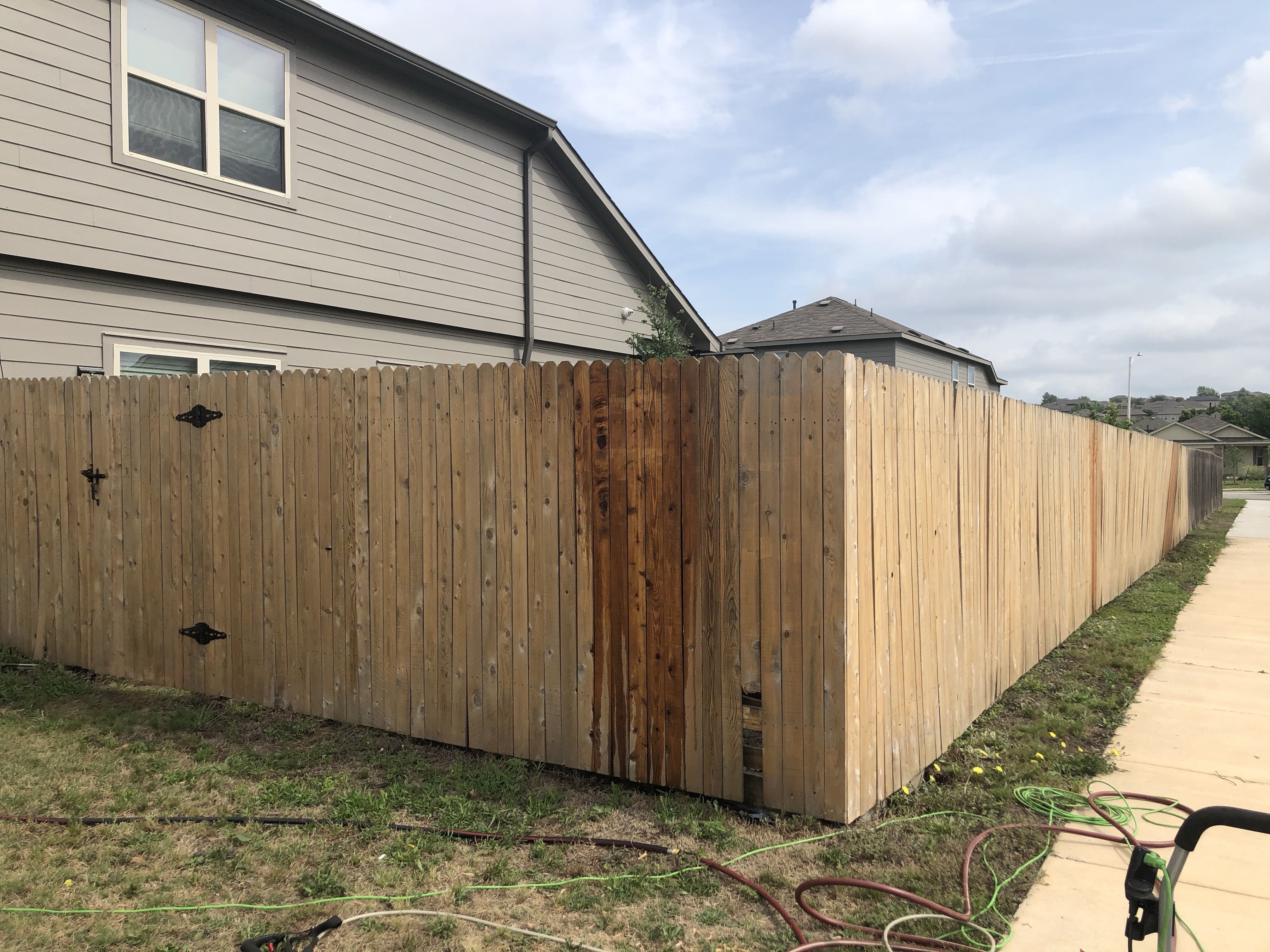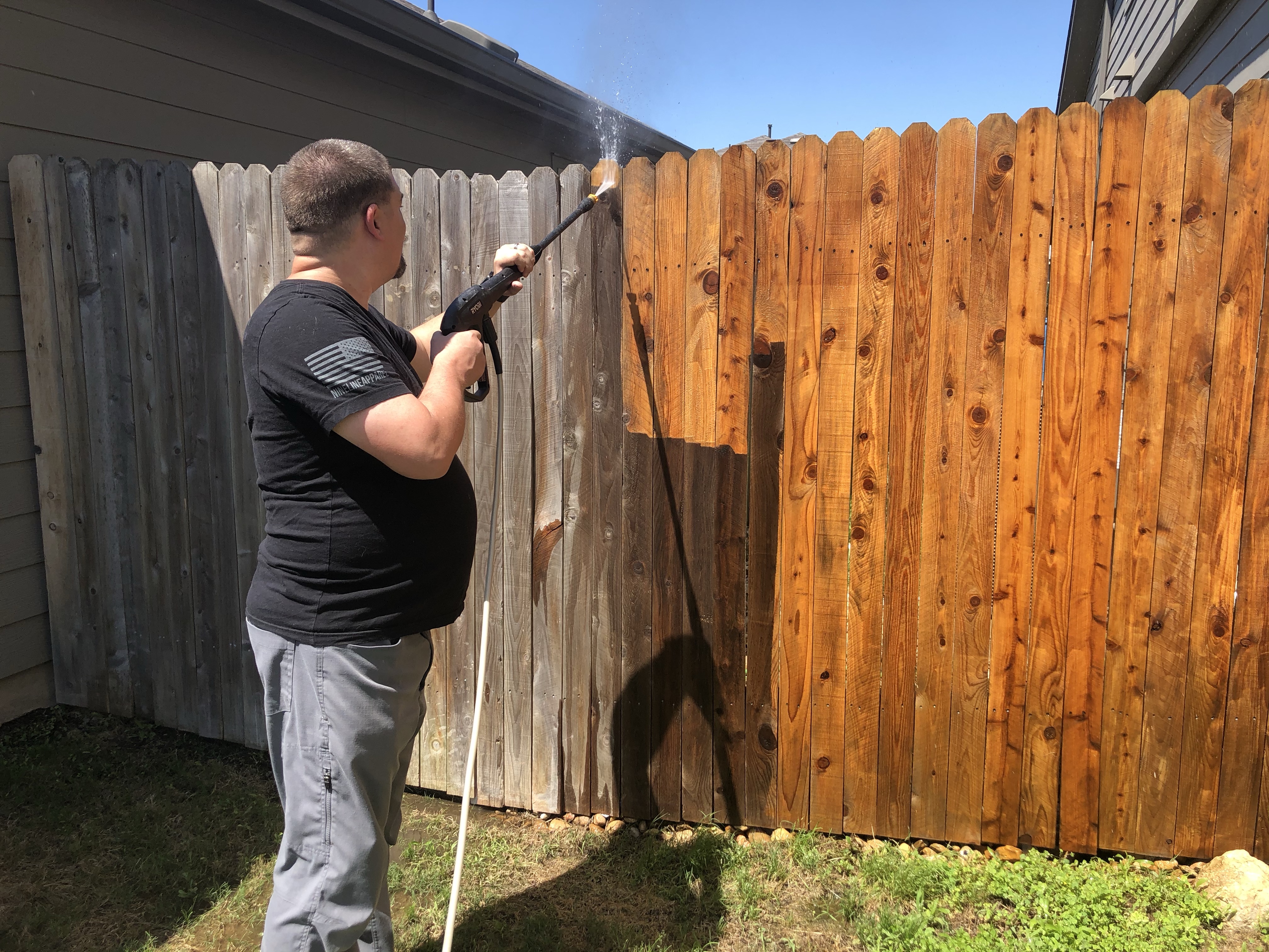 Oh! One more bonus! If it ever stops raining, we’re going to stain our fence. We started power washing it before it rained. It was pretty dirty. Power washing is tiring. We took turns. 😉