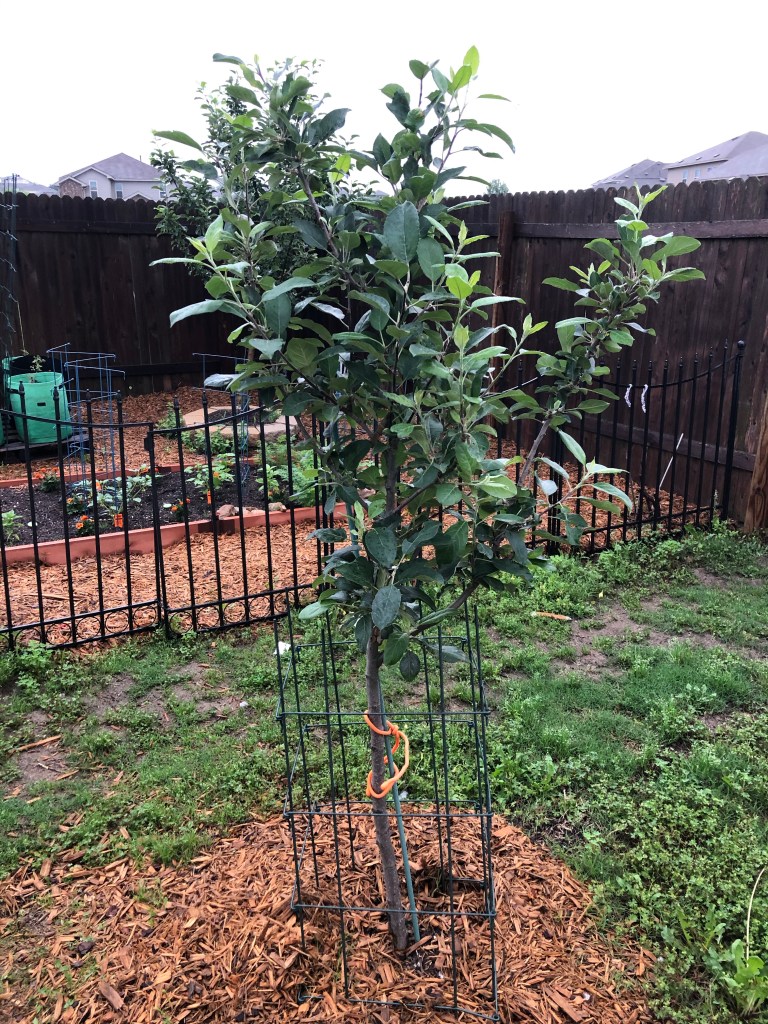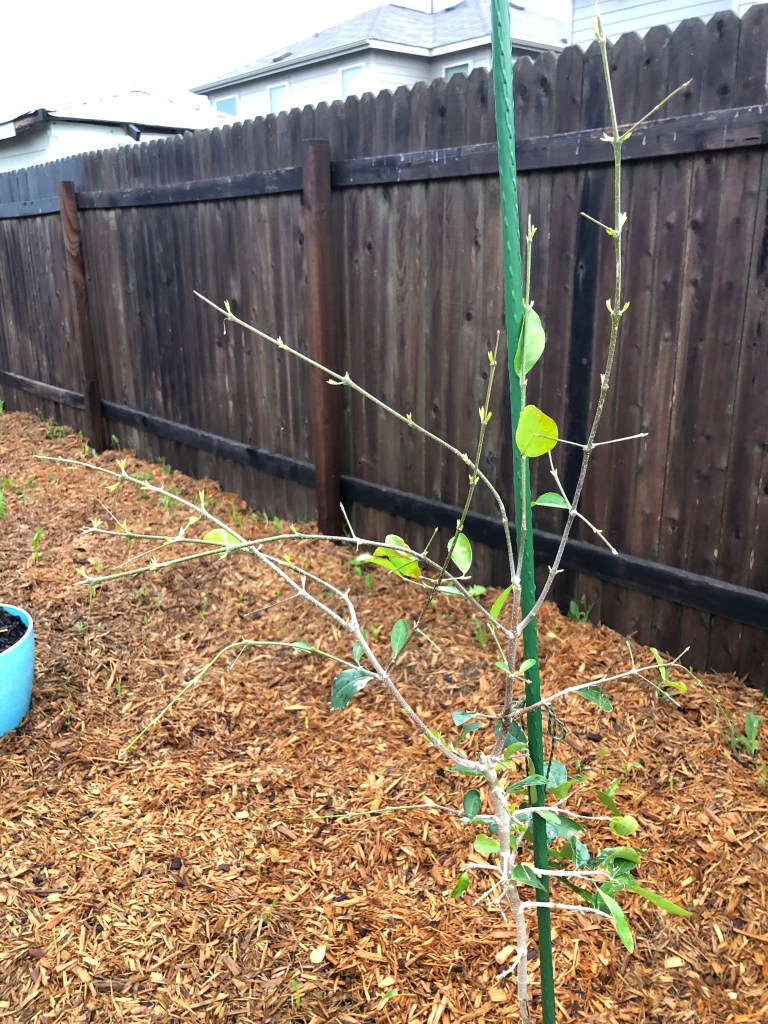 I’m thankful we didn’t get the hail though. When I started seeing the reports from San Antonio, I seriously considered running outside to pull my baby trees up to the porch to protect them. Fortunately, the storm skirted us and dropped all its leftover baby hail north of us instead. My trees simply received the rain they badly needed. And they are showing their joy because of it!